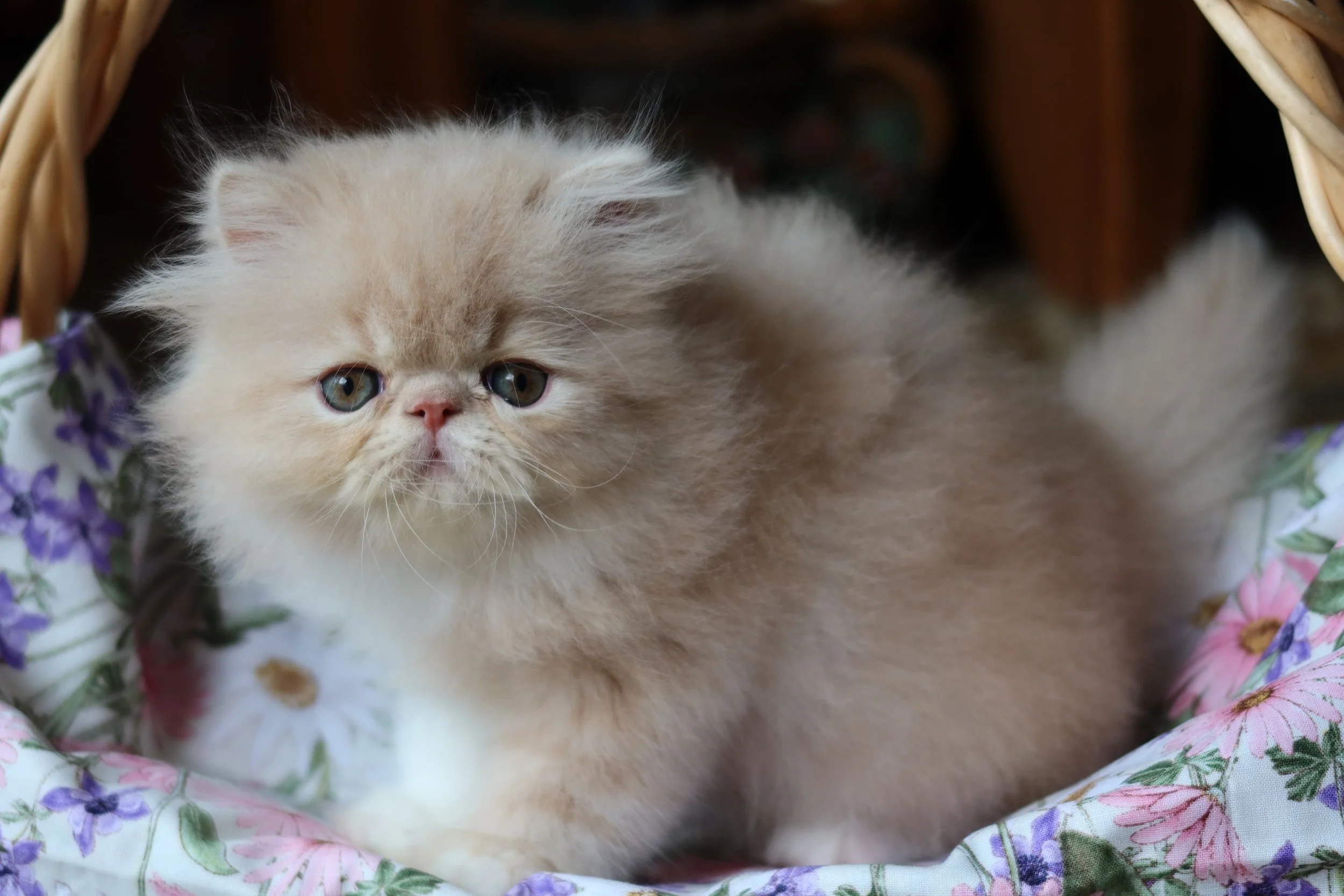 Our Persian kittens are eating dry food Purina Kitten Chow Healthy Development for cats 12 months & under with real chicken - supplemented once daily with NuVet Plus feline daily supplement powder. Occasionally, we will have a Persian kitten or two in a litter who simply prefer canned food and have not transitioned to eating dry food by adoption time, and for them we feed Fancy Feast Tender Chicken Feast Kitten made with real milk. Once our Persian cats are one year old, we gradually transition them to eating dry food Purina Cat Chow naturals with added vitamins, minerals & nutrients original with savory real chicken and nutrient-rich salmon.